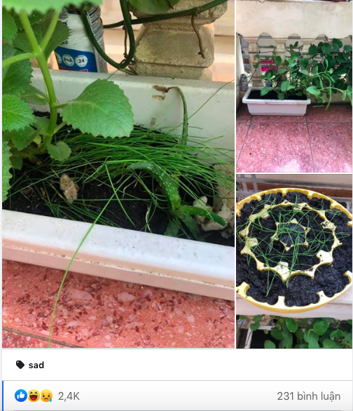 Đăng tải lên mạng xã hội, cô vợ kể lại: "Mình trồng hẹ, chồng tưởng là cỏ dại, nhổ hết, lại cẩn thận lấp thêm đất, tưới nước.