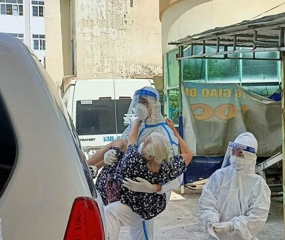 "Má đừng ngại, cứ ôm lấy con!", đó là lời động viên mà Thượng úy Nguyễn Thanh Bình - Hải Đội 2 bộ đội biên phòng Đà Nẵng đã nói với bà cụ F0. Hình ảnh tuyệt đẹp của chàng chiến sĩ trẻ khi bế cụ già tuổi cao sức yêu từ tầng 4 khu cách ly xuống xe cấp cứu để đưa đi điều trị đã hút hàng chục nghìn "tim" của dân mạng.