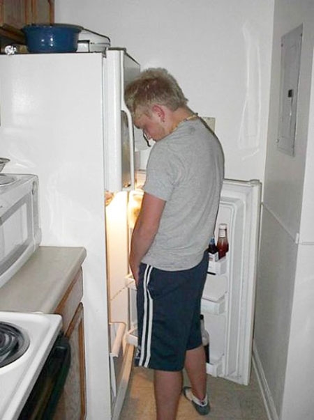 Đang uống dở thì thấy chàng đứng dậy chạy vội ra ngoài, chị tưởng chàng chạy ra nôn nên ra xem thế nào. Hỡi ôi ra đến nơi thì thấy chàng đang đứng úp mặt vào cột điện “xả” mặc người qua đường. Chị nhìn mà ngượng chín mặt.