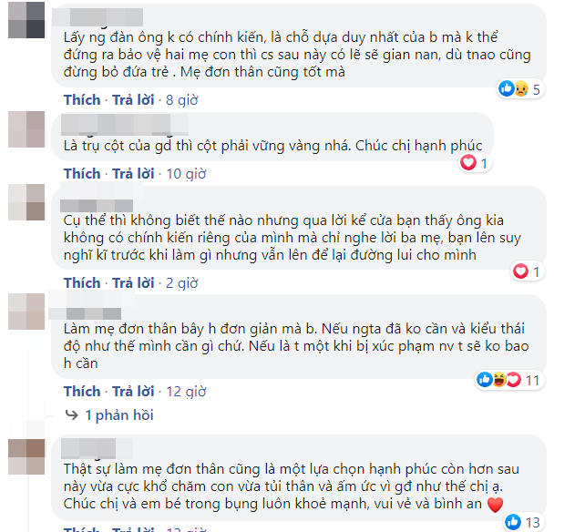 Dân tình sau khi đọc xong bài viết cũng không dám khuyên bảo gì xa vời nhưng đều hi vọng cô gái hãy suy nghĩ thật kỹ chuyện có nên tiếp tục tình yêu này không. Một người chồng, gia đình chồng đã có nghi ngờ, không thật sự yêu thương thì cưới về liệu có hạnh phúc, bền chặt dài lâu? Số khác khuyên cô tốt nhất nên chấp nhận làm mẹ đơn thân ngay từ bây giờ. Chồng mà không có chính kiến, không vững vàng thì "chạy ngay đi" chứ hối tiếc chỉ thêm lãng phí thời gian mà thôi.