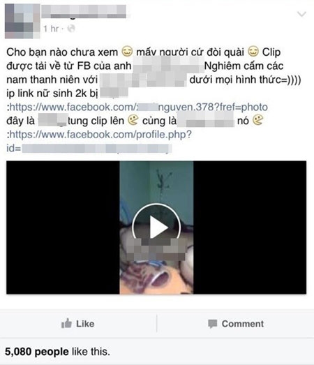 Hàng nghìn comment "nhắc" bạn bè mình vào xem clip sex của nữ sinh 15 tuổi. |