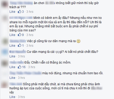 Ngay lúc này đây, khi đám tang em vẫn còn diễn ra ở quê nhà, thì trên facebook, người ta lại chuyển hướng xúc phạm em theo một cách khác, họ nói: "Ăn chơi không biết giữ mình thì bây giờ trách ai?", "Ai bắt nó phải chết đâu?", "Mới có tí chuyện mà cũng chịu không nổi...". Chỉ mong sao gia đình em tránh xa internet, tránh xa mạng xã hội, để họ không phải đau lòng khi biết con mình đã trở thành nạn nhân của những cái like và share vô cảm đến thế nào.