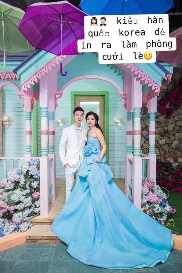 Thế nhưng loạt ảnh mà chị Thu chia sẻ lại hoàn toàn trái ngược với hình dung. Nếu như ở ngoài đời, cô dâu xinh xắn, ăn mặc có "gu", chú rể cũng không kém phần bảnh bao, thì trong bộ ảnh cưới lại "phèn" đến lạ!