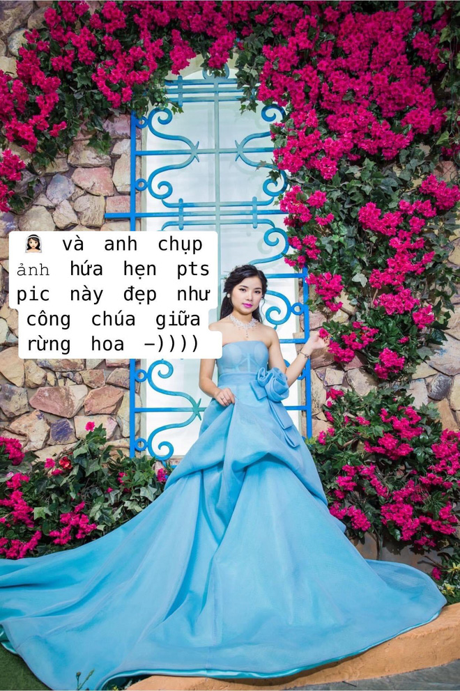 Bộ ảnh này theo concept công chúa, hoàng tử trong khu vườn cổ tích mộng mơ. Lúc người ta đưa bộ váy xanh cho mang mình đã thắc mắc rồi, nhưng được trấn an là: "Cứ diễn sâu thoải mái, ôm nhau, nhìn nhau... các kiểu, sau đó còn được photoshop lại cho lung linh mà".