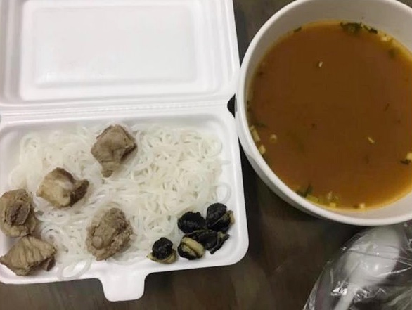Dĩ nhiên, "ăn sẵn" cũng sẽ có cái giá của "ăn sẵn". Đặt đồ ăn trên mạng thì cũng hên xui như mua vé số vậy. May thì sẽ mua được đồ ăn ngon, bán đúng như ảnh minh họa. Còn nếu đen đủi thì bạn sẽ rơi vào hoàn cảnh giống cô gái dưới đây: đặt mua 1 suất bún ốc sườn chua thơm ngon hấp dẫn hợp với ngày mưa gió, nhưng lại nhận về sản phẩm...như một trò đùa!