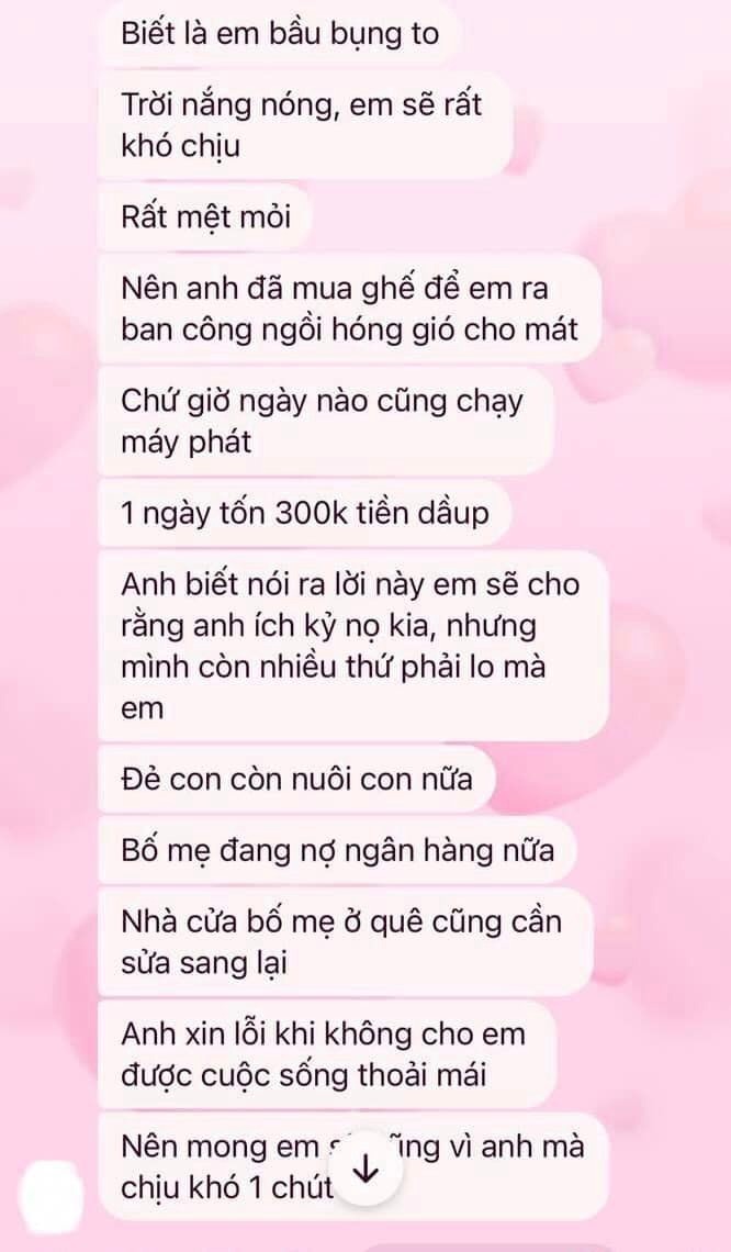 Giữa những ngày hè nóng như thiêu đốt khiến ai cũng khó chịu, cư dân mạng lan truyền câu chuyện dùng điện của một đôi vợ chồng vừa mới cưới được 5 tháng thu hút rất nhiều sự chú ý. Được biết, mâu thuẫn xuất phát từ việc người chồng cảm thấy khi người vợ đang mang thai 8 tháng dùng máy phát điện liên tục 1 ngày 9 tiếng, tốn 300.000 đồng tiền dầu/ngày.