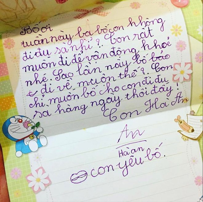 "Mình có công ty thiết kế đồ họa, công việc nhiều lúc bận rộn, phải về muộn. Con gái thấy vậy nên viết thư cho bố. Thực sự nhận thư của con mà mình vui khó tả, đọc thấy bao nhiêu cảm xúc, mắt nhòe đi", anh Tuấn Anh tâm sự.