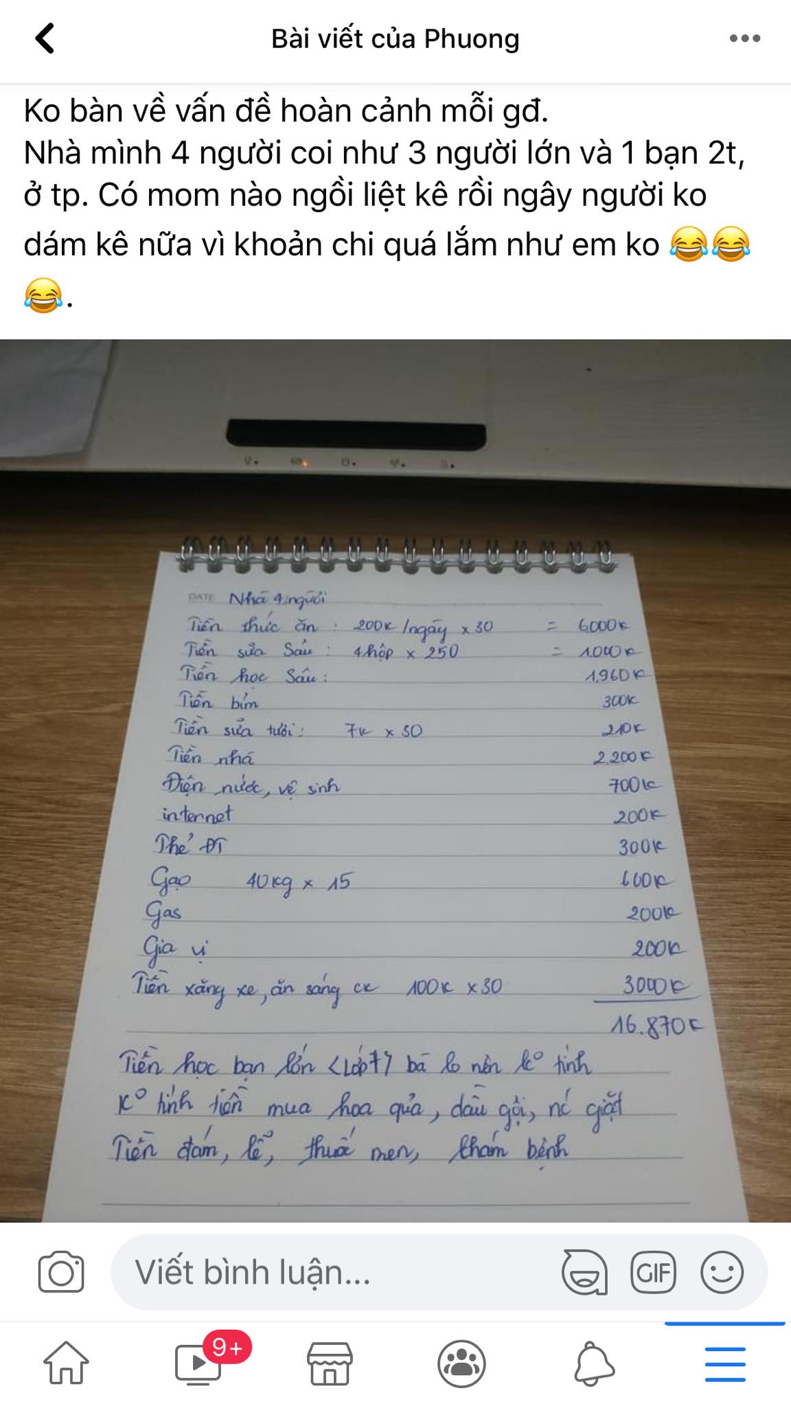 Tuy nhiên, dân mạng cũng chỉ ra nhiều điểm bất hợp lý, thậm chí là "tiêu hoan" của người này. Cụ thể như tiền điện thoại, rồi tiền mua gạo... mà tiêu biểu như là đã tốn tiền ăn 6 triệu/tháng mà riêng người chồng còn tốn thêm 3 triệu tiền xăng xe ăn sáng nữa.