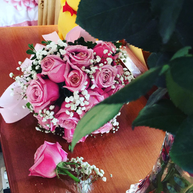 "Hôm nay em cưới, bọn em yêu nhau được hơn một năm. Em cũng có bầu ba tháng, mẹ chồng em lúc trước bảo chồng em là khi nào có thì cho cưới. Em với chồng thì cũng vui vẻ thôi vì bọn em cũng thả để tính cưới.