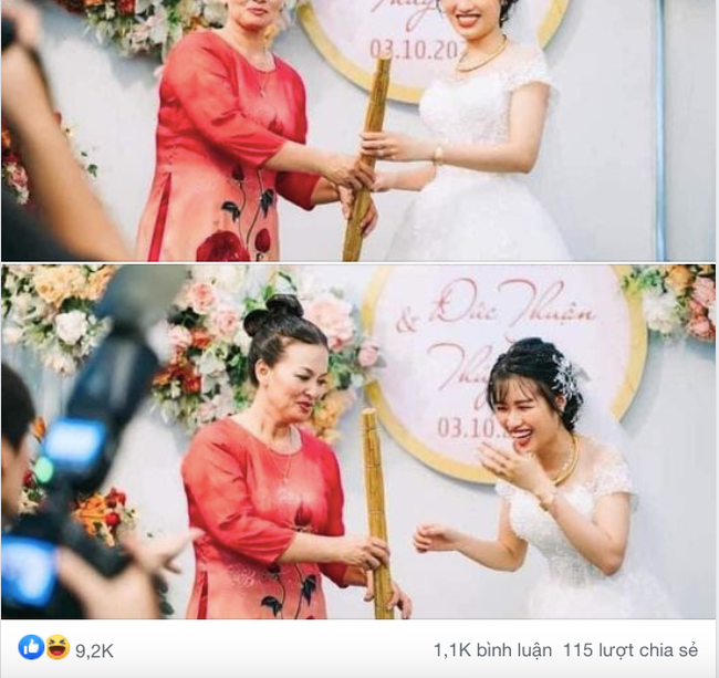 Hóa ra, không phải mẹ chú rể chủ động hay chuẩn bị trước cây chổi lên trao cho nàng dâu mới mà chỉ là một trò đùa vui của người nhà mà thôi. Xem ra, trò đùa này cũng thật sự thành công khi được chia sẻ đến khắp các group hay fanpage lớn.
