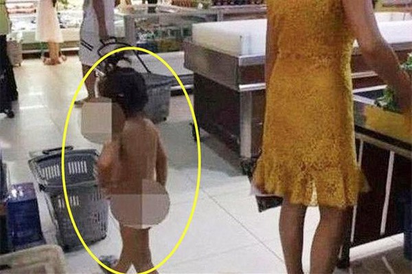Hình ảnh một bé gái tầm 4-5 tuổi vô tư đi lại trong siêu thị với bộ dạng không mặc quần áo khiến nhiều người không khỏi ngạc nhiên. Tất nhiên bé gái đó không đi một mình, đi cùng với bé là mẹ và điều này lại khiến mọi người chứng kiến càng khó hiểu hơn.