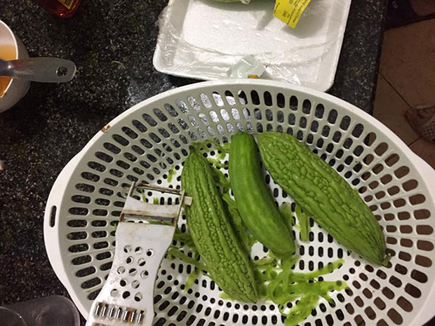 Chả là, cô nàng này có lẽ lần đầu xử lý món mướp đắng nên đã đem đi… gọt vỏ. Về lẽ thường các loại củ quả ở Việt Nam đều được gọt vỏ để loại bỏ thuốc trừ sâu, đất cát… nhưng riêng với mướp đắng thì chỉ cần rửa sạch và bỏ ruột là được rồi. Vì tưởng mướp đắng cũng xử lý như những loại củ quả khác mà cô nàng này đã khiến cả nhà người yêu cười bò.