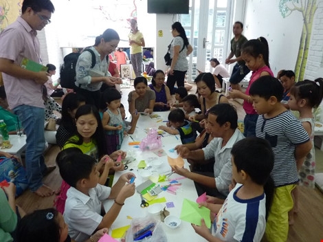 Ngày nay, nhiều cha mẹ lấy lý do công việc bận rộn nên không thể gần gũi với con cái. Cha mẹ cần tạo sân chơi để cùng vui chơi với con mình thì mới giúp con tránh xa những trò chơi thiếu lành mạnh. Trong ảnh: Các em nhỏ đang tập xếp giấy origami. Ảnh: THANH TUYỀN |