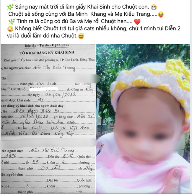 Minh Khang sau tuyên bố chia tay liên tục đưa ra động thái nhằm khẳng định hiện tại bản thân chỉ dành tình yêu cho Chuột và những người yêu thương. Anh cũng đi làm giấy khai sinh, ghi tên mình vào phần mẹ trên giấy. Đồng thời, Minh Khang khẳng định mình vừa làm bố vừa làm mẹ của Chuột, hai bố con sẽ cùng đồng hành với nhau trong thời gian tới.