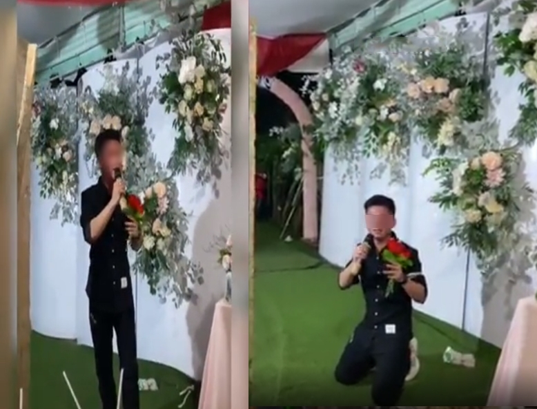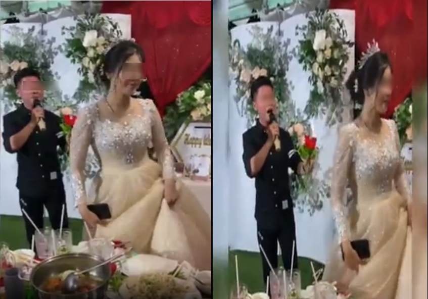 Vừa qua, cư dân mạng chia sẻ một đoạn clip ghi cảnh đám cưới. Có thể thấy, trong clip này là một chàng trai đang đứng trên sân khấu và cô dâu ngồi bên bàn tiệc. Được biết, chàng trai đứng trên sân khấu chính là người yêu cũ của cô dâu đang góp vui cho ngày trọng đại bằng một bài hát.