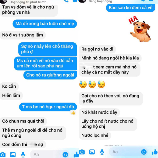 Theo đó, chị gái chồng gửi chó về nhờ nuôi và liên tục nhắn tin dặn dò em trai nhớ "cho nó ngủ cùng", "gọi nó vào chơi với"...