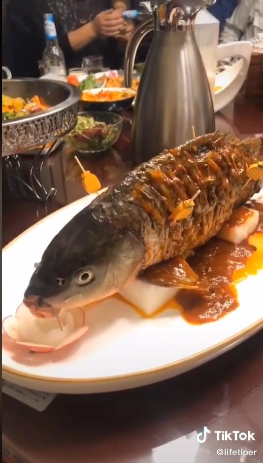 Mới đây, đoạn clip về món cá sốt tại một nhà hàng được lan truyền với tốc độ chóng mặt trên mạng xã hội TikTok. Đáng chú ý, món ăn này dùng nguyên liệu là... một chú cá vẫn còn đang thở.