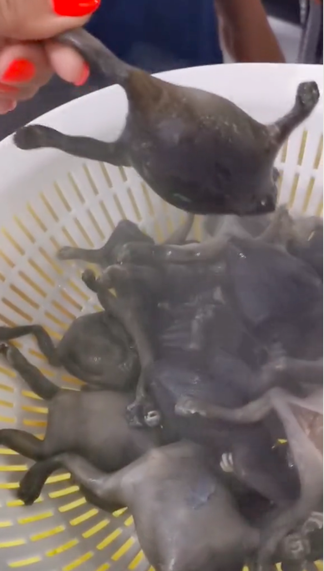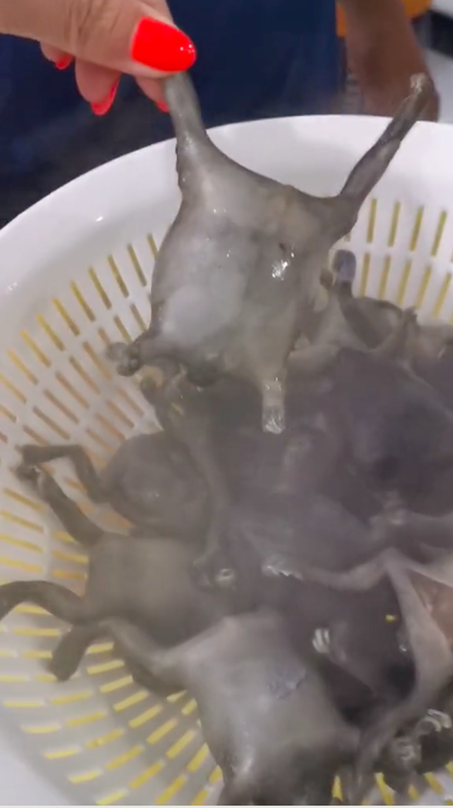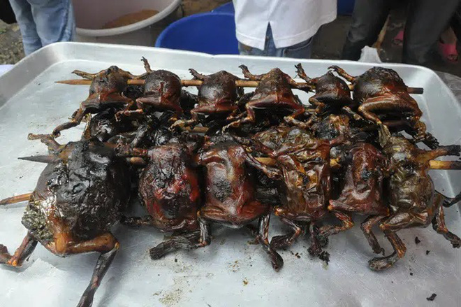 Như mới đây, một đoạn clip ghi lại cảnh một người đang ăn một món ăn nhìn khá là kỳ dị. Cụ thể, có thể thấy cảnh một người cầm trên tay cả rổ đựng thịt của con gì đó còn bốc khói nóng hổi. Nhìn kỹ thì thấy loài vật này có 4 chân, phần bụng phình khá to.