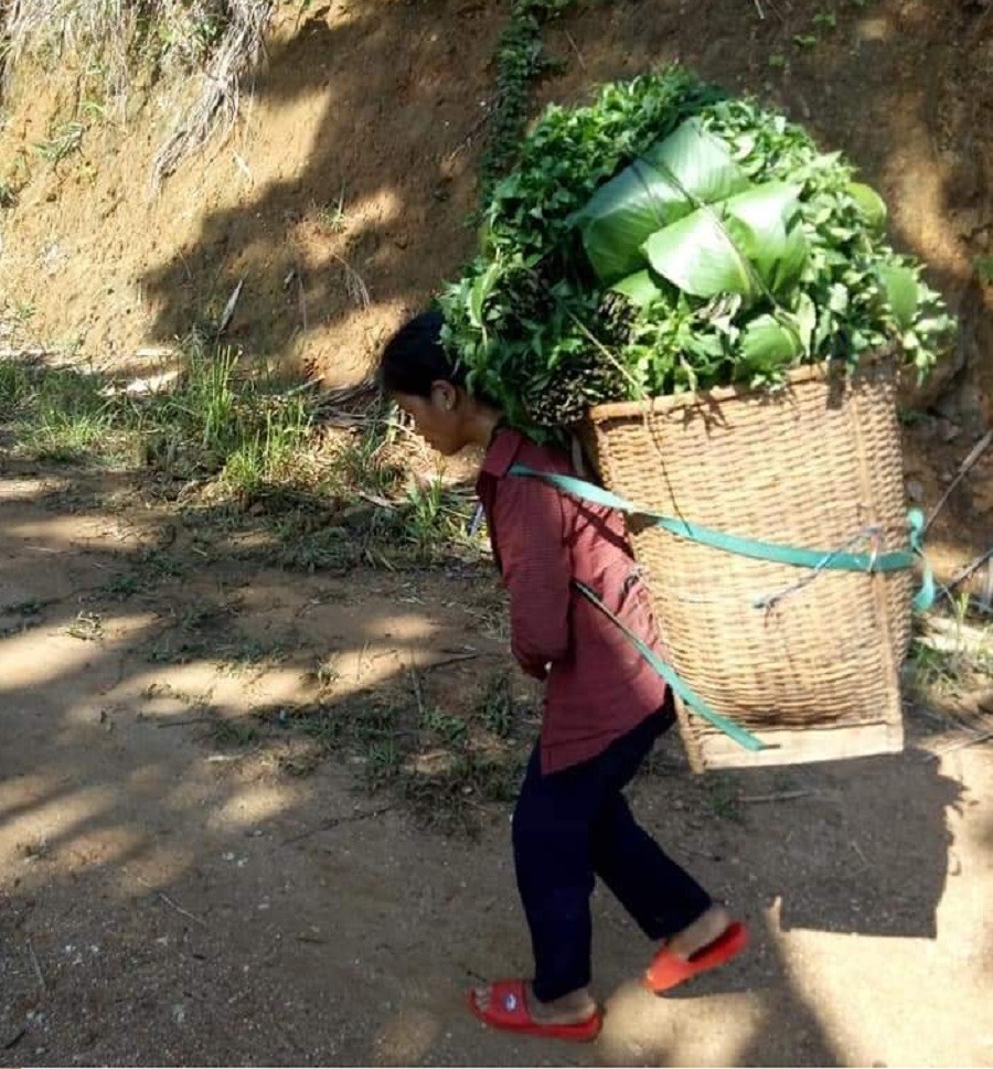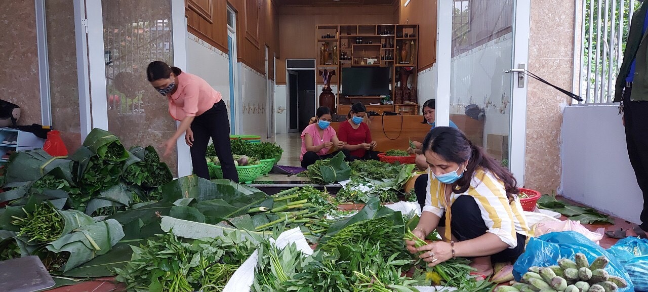 Đám rẫy nhỏ với sắn, rau lang tươi tốt. Cẩn thận chọn lựa, chị cắt 5 bó rau với chất đầy 1 thúng sắn. Tờ mờ sáng hôm sau, người mẹ 8 con này đi bộ mạch tới thẳng nhà văn hóa thôn để tập kết hàng nông sản để chuyển xuống đồng bằng, tiếp thêm thực phẩm cho người dân vùng tâm dịch.