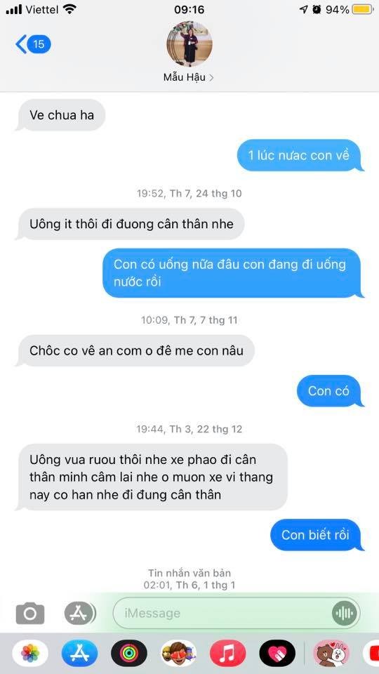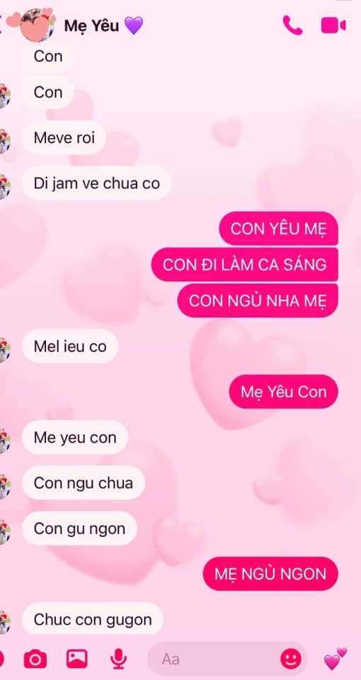 Hôm nay gọi về chỉ cho mẹ viết tin nhắn, mẹ vui đến nỗi khóc, tao cũng chảy nước mắt luôn. Thấy mẹ mình đúng là thiệt thòi nhiều quá. Bao năm mẹ nuôi cho ăn học rồi đến bây giờ mới chỉ cho mẹ được cách viết tin nhắn. Mà mong muốn của mẹ là cố viết cho được “Mẹ yêu con", "chúc con ngủ ngon"."