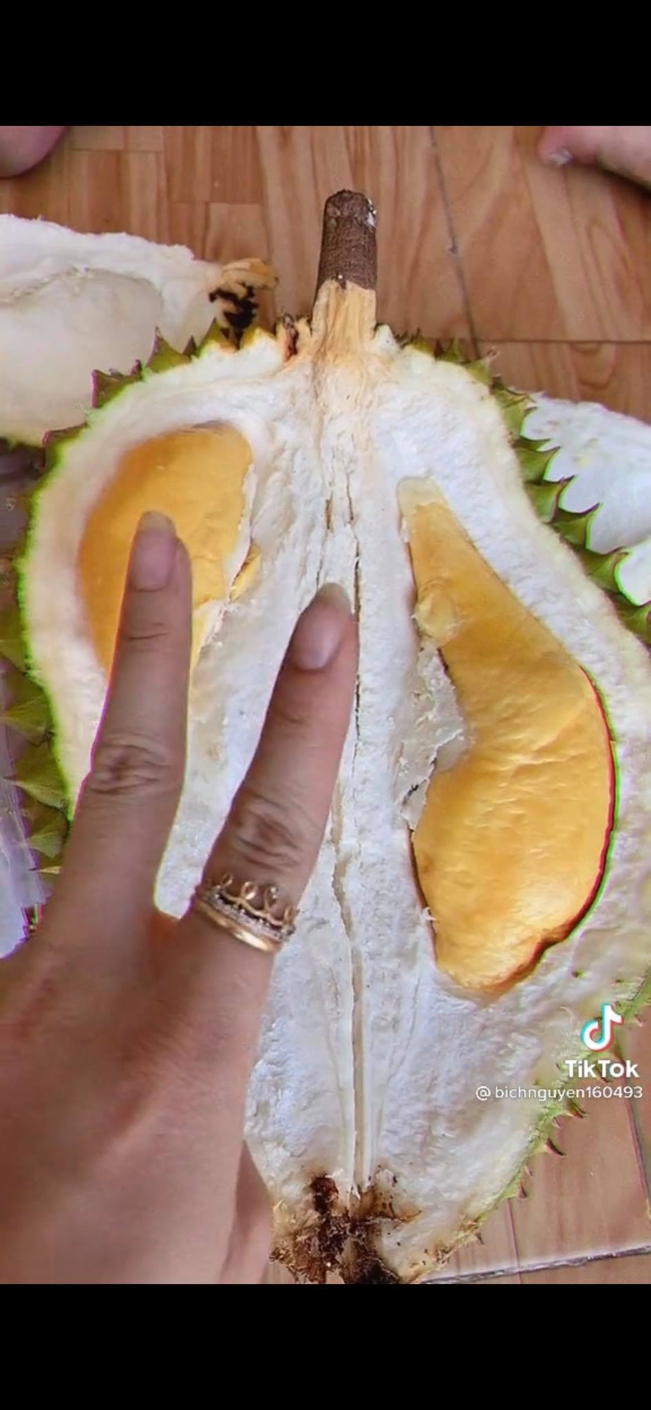 Có thể nói, với tâm lý háo hức chờ đợi một siêu phẩm sầu riêng 400k thì sau khi bổ quả sầu riêng ra, chỉ còn lại sự thất vọng tột cùng. Ở múi đầu tiên bổ ra, hoàn toàn không có chút cơm nào. Múi thứ hai bổ ra có chiếc cơm nhỏ như hạt cơm. Múi thứ ba bổ ra thì tạm hài lòng nhưng nếu so với mức giá thì thực sự là đắt một cách quá đáng.