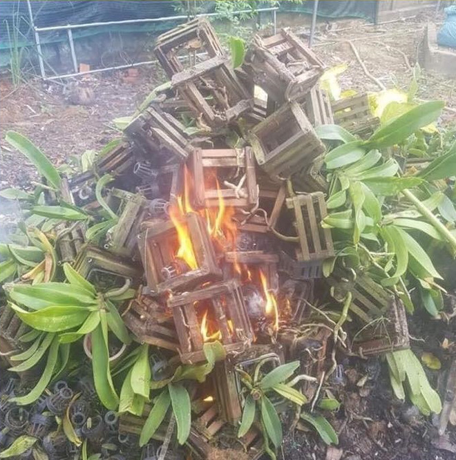 Nhìn cảnh những giỏ lan đắt tiền bị chất đống đốt như rác, chẳng hẳn anh chồng cảm thấy 'ruột đau như cắt' nhưng chẳng thể làm gì. Nhiều dân mạng cho rằng anh chàng đừng nên đùa với vợ vì hậu quả khôn lường.