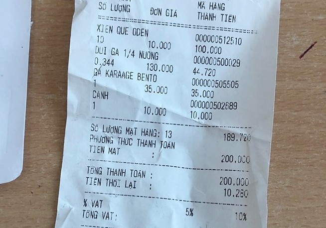Chị H. còn giữ lại cả hóa đơn mua hàng làm bằng chứng bữa ăn hôm đó, ngoài nửa con gà dính mảng bám lạ ở trên thì chị còn mua thêm 10 xiên que, 1 chiếc cánh gà và 1 hộp gà bento nữa, nhưng số đồ ăn còn lại chị không phản ánh gì. Cư dân mạng vẫn đang ngóng xem phía siêu thị sẽ phản hồi ra sao về sự cố gây sốc này.