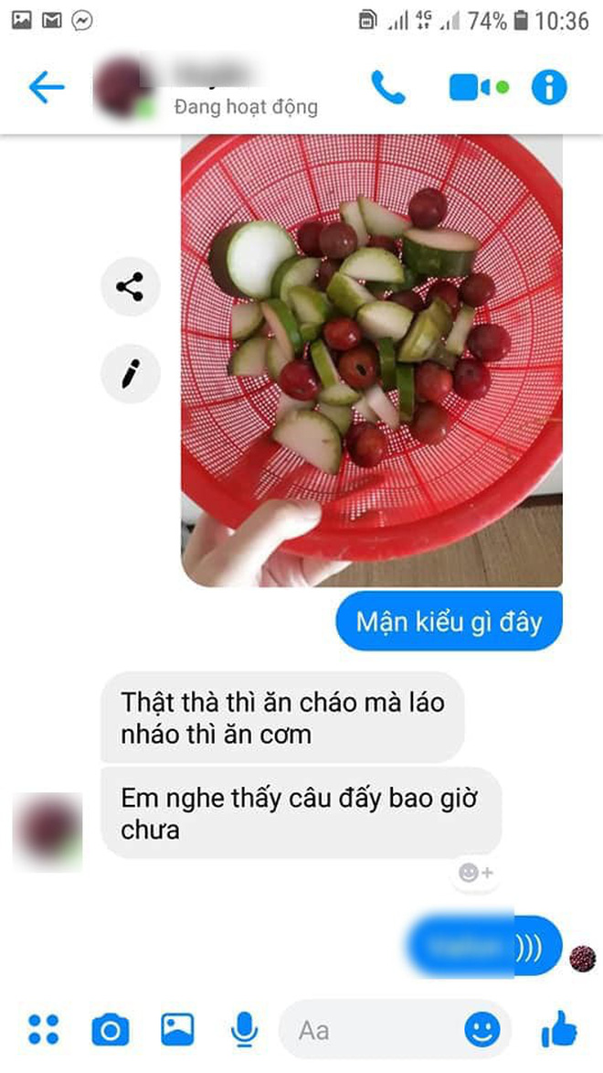 05/06/2019 02:48Mua mận online 40k bị 'độn' toàn bầu bí, cô gái sốc khi người bán phản hồi: 'Thật thà ăn cháo láo nháo ăn cơm, nghe thấy bao giờ chưa?'