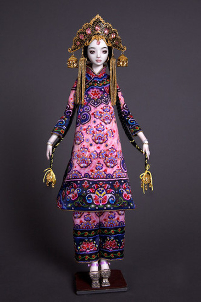 Ngoài ra, Marina Bychkova cũng tạo ra một vài tác phẩm theo phong cách Trung Hoa. Trong đó, chi tiết đắt giá nhất chính là đôi chân búp bê được mô phỏng theo "bàn chân gót sen" – một nét văn hóa ngày nay đã biến mất ở Trung Quốc. Được biết, một đôi bàn chân tí hon như thế này có giá từ 6,8 – 10 triệu VND.