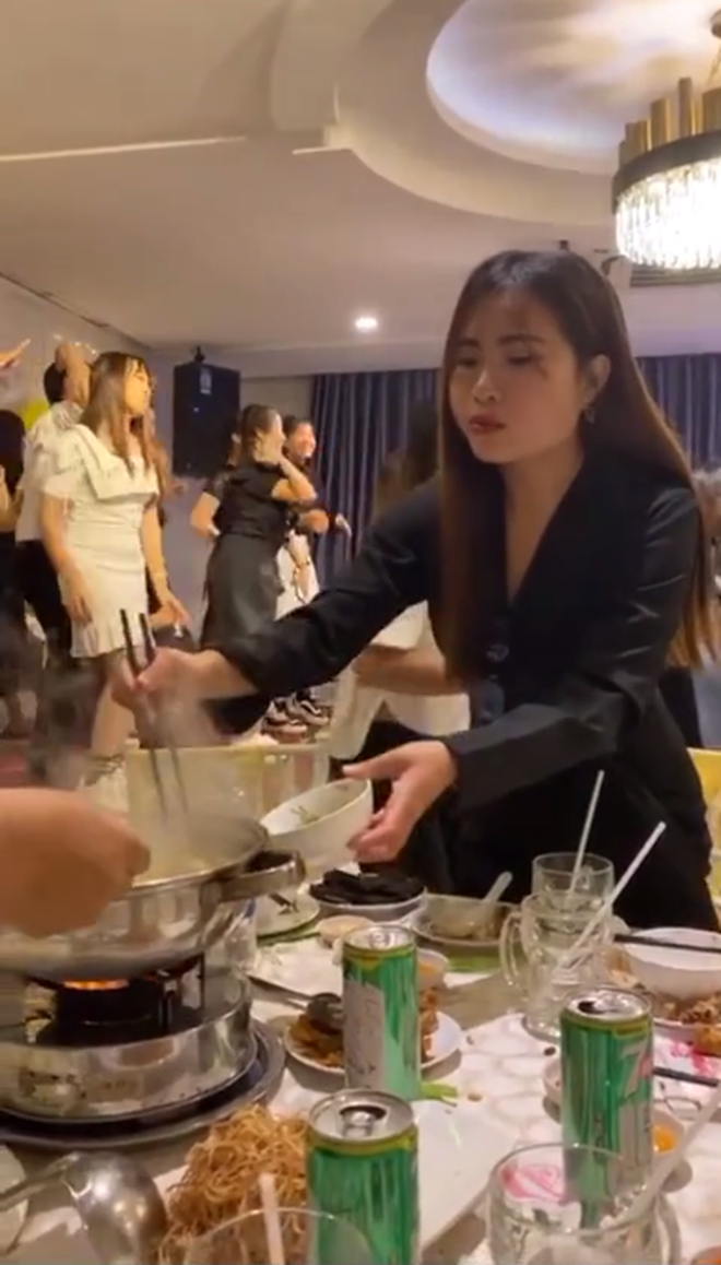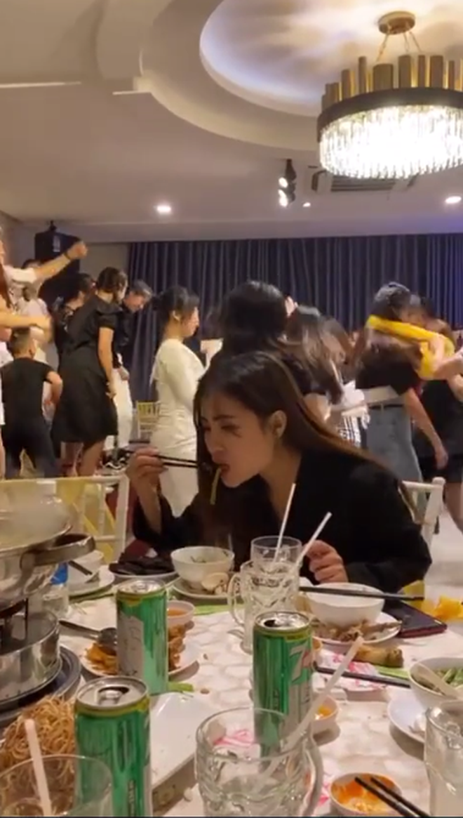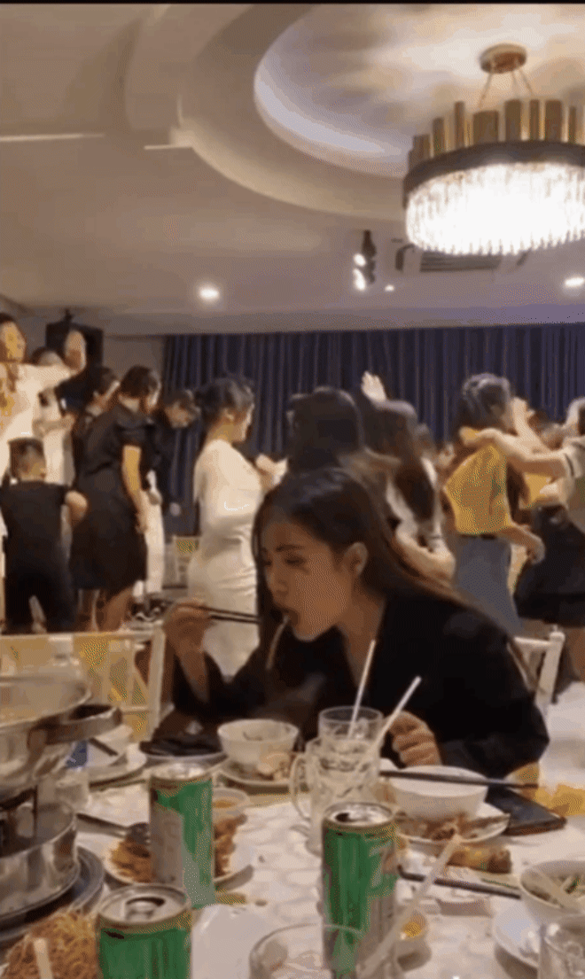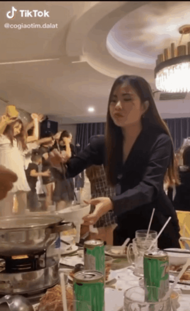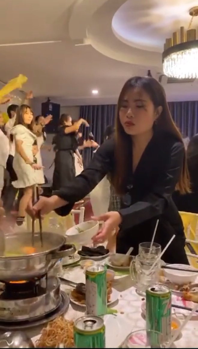 Đoạn clip TikTok dưới đây cũng là ví dụ điển hình cho trường hợp trên. Đi ăn tiệc ở nhà hàng nọ, trong khi tất cả mọi người đều đang "quẩy tới bến" cùng tiếng nhạc DJ cực mạnh, tiếng hú hét cực sung thì cô gái váy đen vẫn ngồi ăn "bình chân như vại" như không có chuyện gì xảy ra.