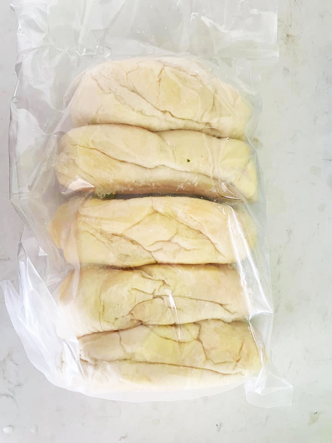 - Nếu bạn mua bánh mì tươi (chưa nướng/nướng sơ) hoặc bánh mì đã nướng chín: Bạn cần chuẩn bị túi zip hoặc tốt nhất là túi hút chân không. Bạn cho bánh mì tươi hoặc bánh mì đã nướng chín vào các túi đã chuẩn bị (số lượng bánh trong mỗi túi tùy theo nhu cầu của bạn và gia đình trong 1 lần ăn) và để vào ngăn đông của tủ lạnh.