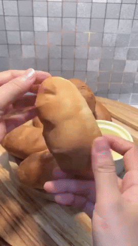 Khi muốn ăn, chị em chỉ cần: Lấy túi bánh mì ra, rã đông ở nhiệt độ phòng (khoảng 30-40 phút). Sau đó, xịt 1 lớp nước lên bề mặt bánh, cho vào nồi chiên không dầu/lò nướng và nướng ở mức nhiệt 200 độ C trong vòng 5-7 phút. Vậy là có ngay chiếc bánh mì nóng hổi, mềm thơm để chén rồi đó!