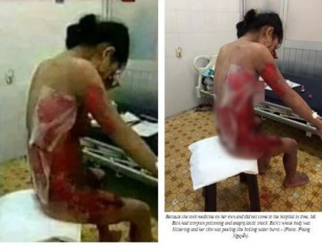Thế nhưng, phóng viên của AFP đã tìm ra chân tướng sự việc. Đây không phải là cô gái Trung Đông nào đó bị bạo hành dã man mà thực chất là hình ảnh một người phụ nữ Việt Nam bị thương nặng do... bọ cạp cắn.