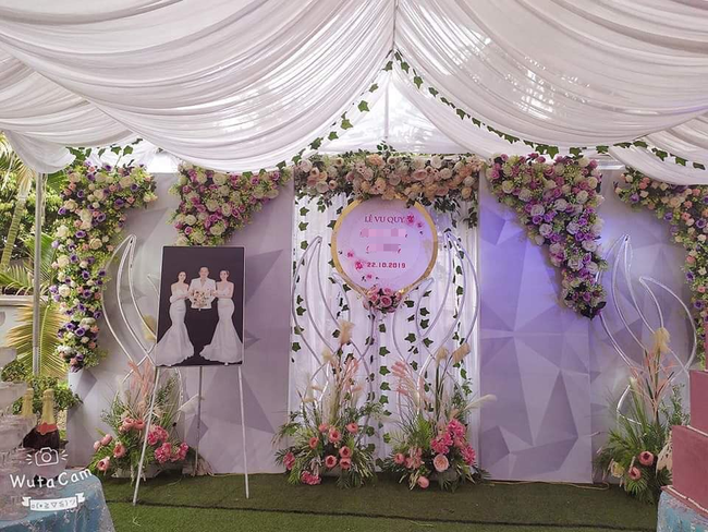 Trong bằng chứng của cô bạn trên đưa ra thì dân tình phát hiện trên tấm phông cưới chỉ có tên 2 người, tuyệt đối không có 2 cô dâu. Nhưng trong một ngày trọng đại thế này ai lại nghĩ ra trò đùa hại não thế?