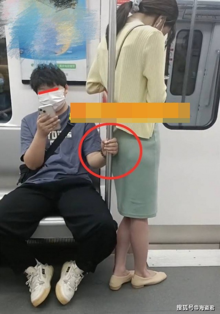 Sẽ chẳng có gì đáng nói nếu như sự chênh lệch chiều cao khiến mông của cô gái chạm đúng vào tay nam thanh niên đang bám lấy tay vịn. Bởi vì hai người đều chăm chú nhìn điện thoại nên cả hai đều không phát hiện ra họ đang trong cảnh kỳ quặc.