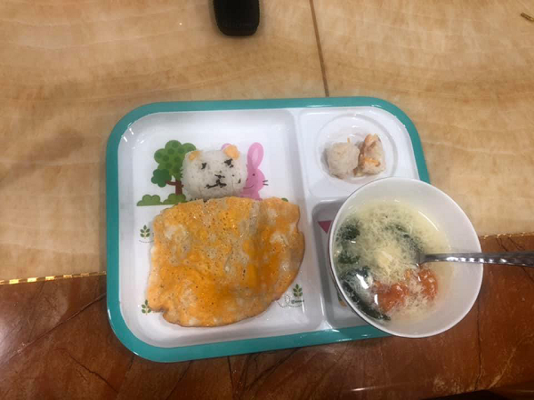 Thế nhưng phiên bản của bà mẹ này lại gây hiệu ứng hoàn toàn trái ngược. Con khóc, không chịu ăn vì đĩa cơm quá... kinh dị. Cũng là phần cơm nằm dưới lớp trứng nhưng bà mẹ đã nặn thành hình dạng vô cùng khó coi.