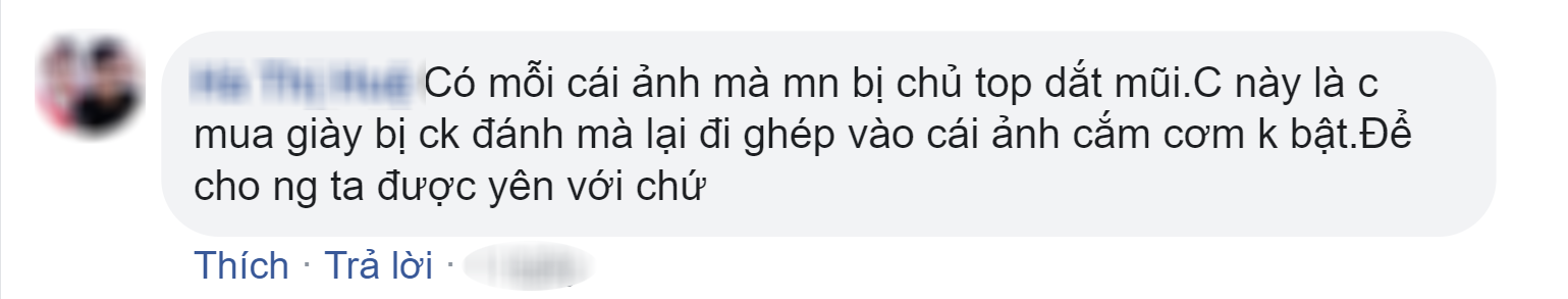 - Có mỗi cái ảnh mà mọi người bị chủ top dắt mũi. Chị này là chị mua giày bị chồng đánh mà lại đi ghép vào cái ảnh cắm cơm không bật để cho người ta được yên với chứ.
