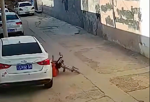 Theo đó, mạng xã hội chia sẻ đoạn clip được camera an ninh ghi lại tại một con ngõ vắng vẻ. Con ngõ này có khá nhiều ô tô đang dừng đỗ ven đường, lúc này, một cậu bé miệng ngậm chiếc bánh đang tung tăng đạp xe thì bất ngờ mất lái đâm thẳng vào một chiếc ô tô đang dừng đỗ.