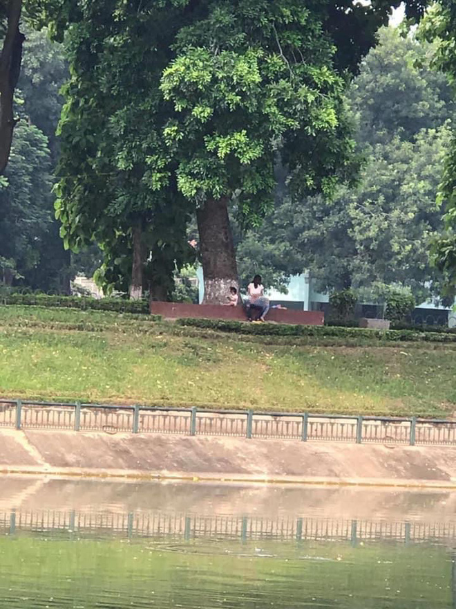 Anh L.V, chủ nhân của bức ảnh cho biết sự việc xảy ra tại công viên Thủ Lệ, Hà Nội. Khi anh đi câu vào khoảng 4h chiều thì tình cờ trông thấy sự việc và chụp lại. “Có trẻ con ở đó, dù thế nào cũng không được làm như vậy”, anh L.V bày tỏ.