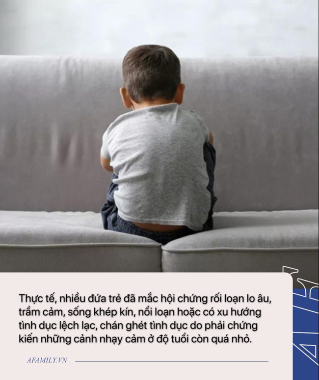 Thực tế, nhiều đứa trẻ đã mắc hội chứng rối loạn lo âu, trầm cảm, sống khép kín, nổi loạn hoặc có xu hướng tình dục lệch lạc, chán ghét tình dục do phải chứng kiến những cảnh nhạy cảm ở độ tuổi còn quá nhỏ.