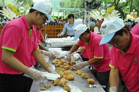 “Chạy đua kỷ lục, cố gắng làm thật to, hoành tráng chẳng qua là để các công ty, đơn vị tự sướng. Lễ vật cúng tổ tiên được sử dụng như một hình thức quảng cáo, phô trương sức mạnh của đơn vị đó. Thực tế, từng có những chiếc bánh, nồi hủ tiếu khổng lồ phải vứt bỏ sau khi trưng bày.