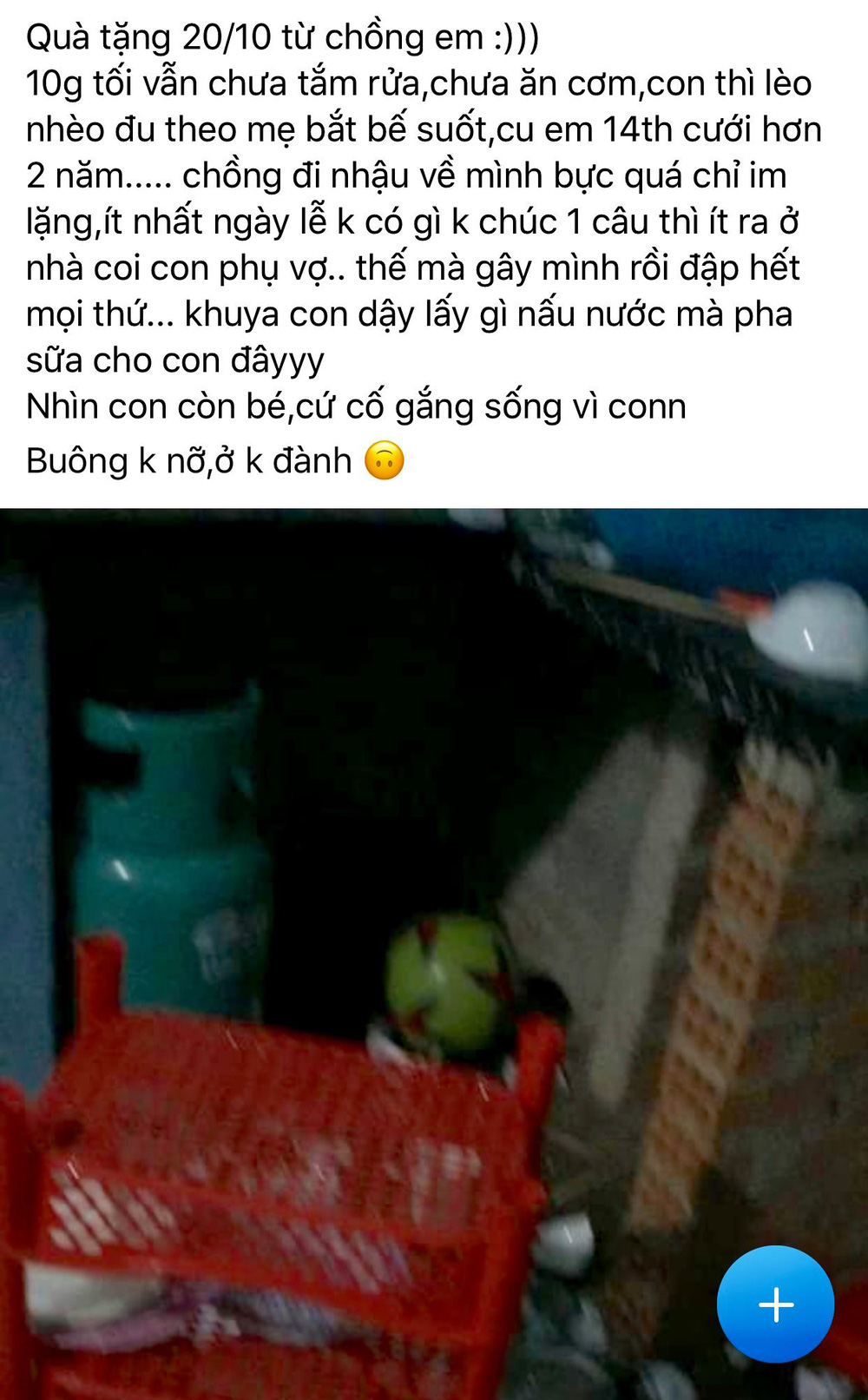 Quà 20/10 của mình là bãi chiến trường này đây, khuya nay con dậy lấy gì nấu nước mà pha sữa bây giờ"