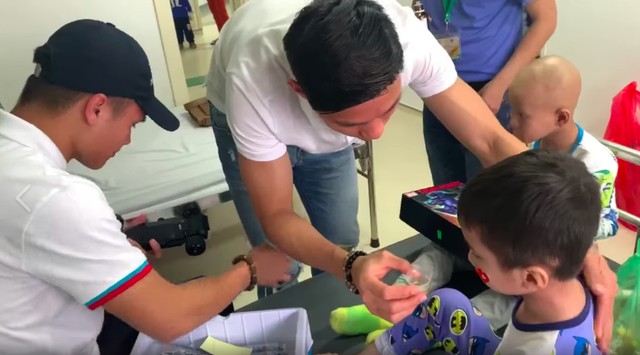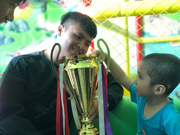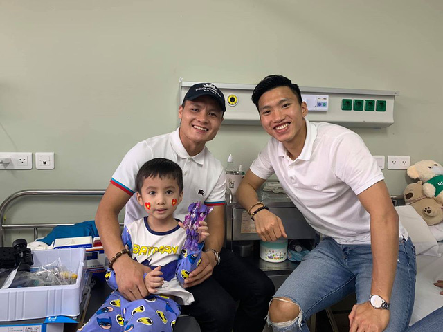 Ngày 15/11, nghe tin Tôm phải xạ trị, Quang Hải và đồng đội Văn Hậu đã ngay lập tức chủ động xin phép gia đình Tôm, đến thăm và tặng đồ chơi cho cậu bé.