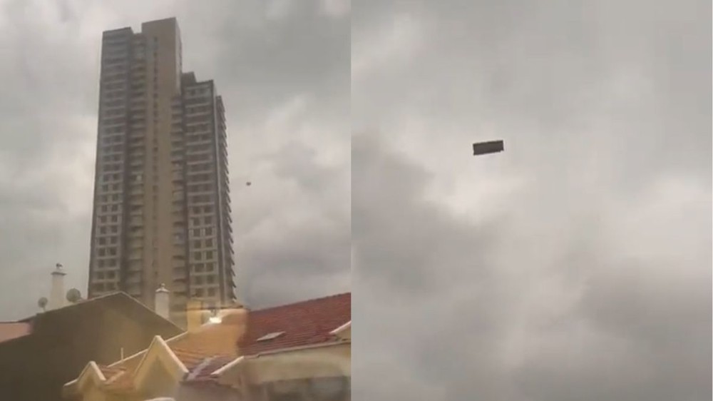 Đoạn video được anh Onur Kalmaz quay lại và đăng lên mạng xã hội Twitter. Chiếc sofa sau đó rơi xuống vườn một nhà dân và không có ai bị thương trong vụ việc.