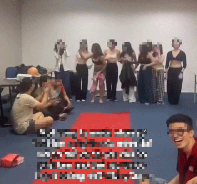Trong các đoạn clip, một số nữ nhân viên cởi bỏ trang phục ngoài, chỉ còn mặc nội y và catwalk giữa tiếng nhạc lớn. Ở những video khác, một số nam nhân viên cởi trần, chỉ mặc quần ngắn và di chuyển như đang biểu diễn trên sân khấu. Thậm chí, có cảnh một nữ nhân viên mặc đồ lót màu đỏ có hành vi tiếp xúc nhạy cảm với một nam thanh niên ăn mặc thiếu vải, trước sự cổ vũ của nhiều người xung quanh.