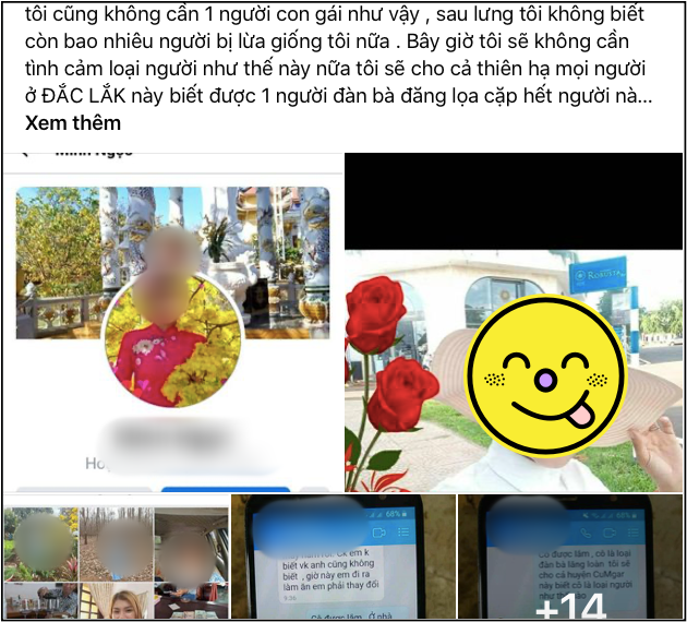 "Mình ức thay, mình đã quan tâm như vậy chắc vẫn không đủ với loại người này. Giờ mình cũng để cho biết luôn, tầm này không còn nhân nhượng gì nữa. Mong cộng đồng chia sẻ để biết bộ mặt giả dối của con người này. Tôi dám đưa mặt em lên mạng xã hội này là tôi có đủ bằng chứng, tôi không sợ kiện đâu".