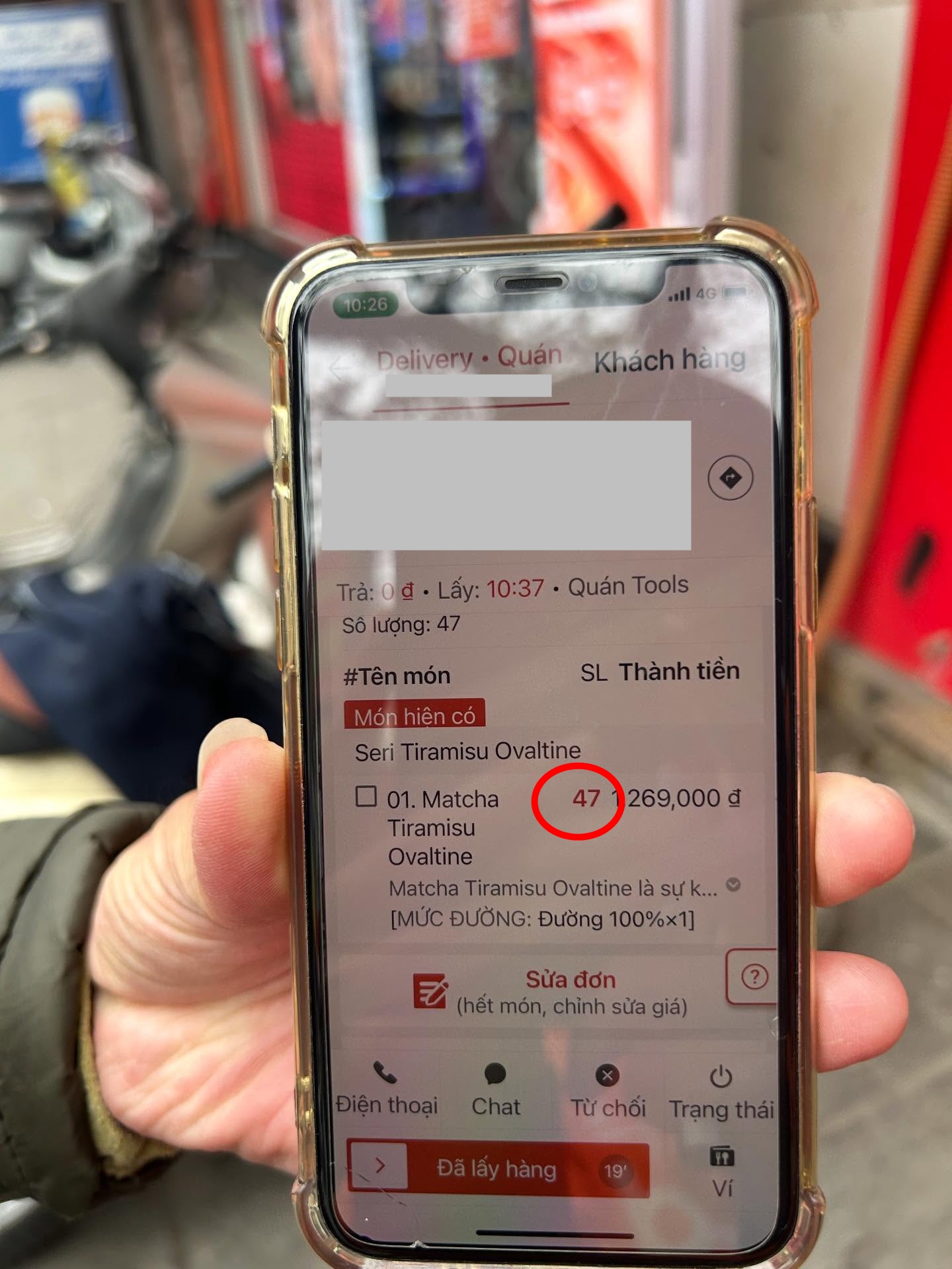 Song, khách hàng không đồng ý với hướng xử lý của shipper, bởi đã từng đặt những đơn tương tự, thường được quán hỗ trợ ship hoặc có tips thêm cho tài xế. “Thì anh huỷ giúp em là được mà, có bắt buộc phải giao đâu anh”, người này nói thêm. Song, phía shipper cho biết nếu huỷ đơn thì sẽ ảnh hưởng đến mức thưởng và hiệu suất hoạt động trong ngày.