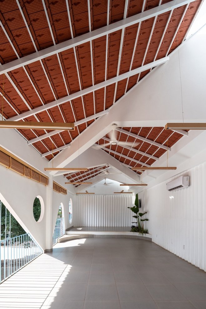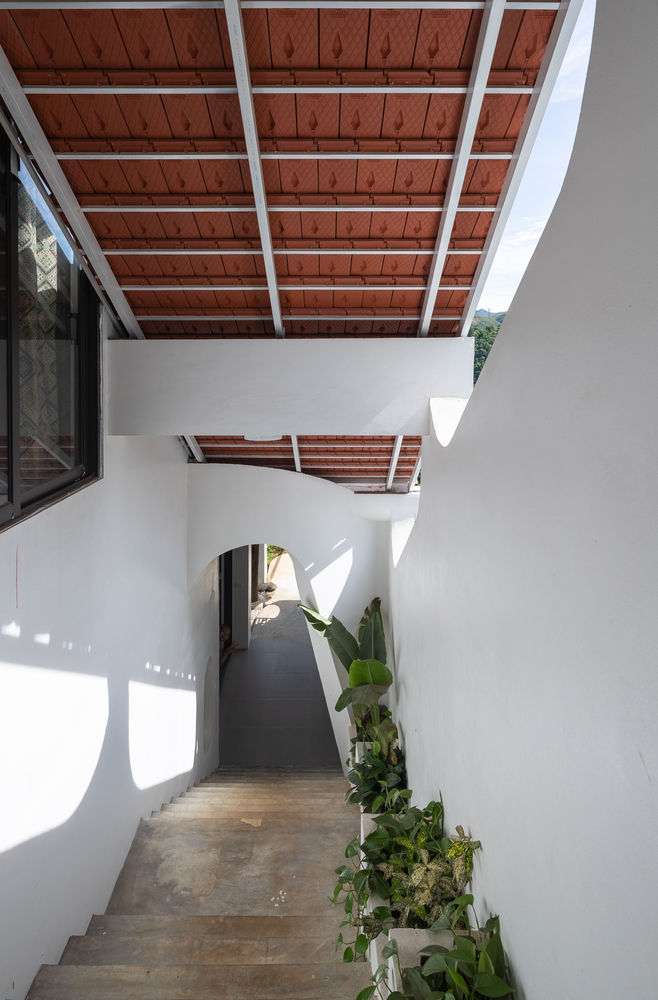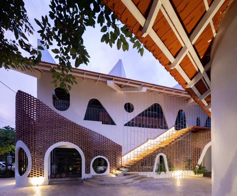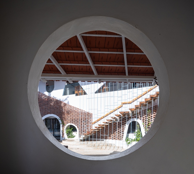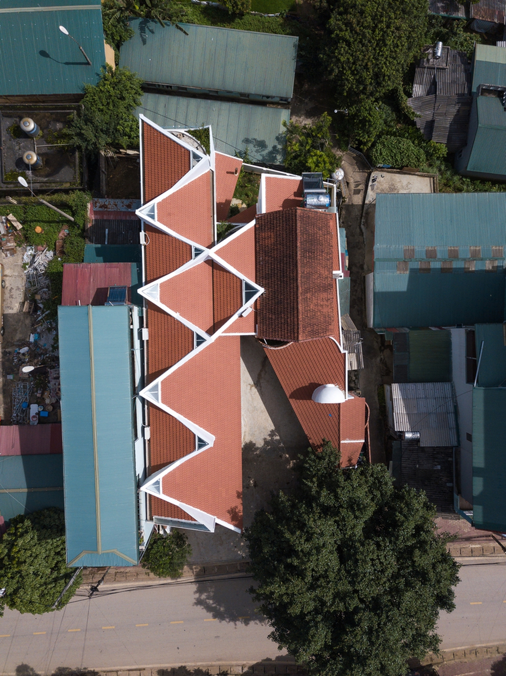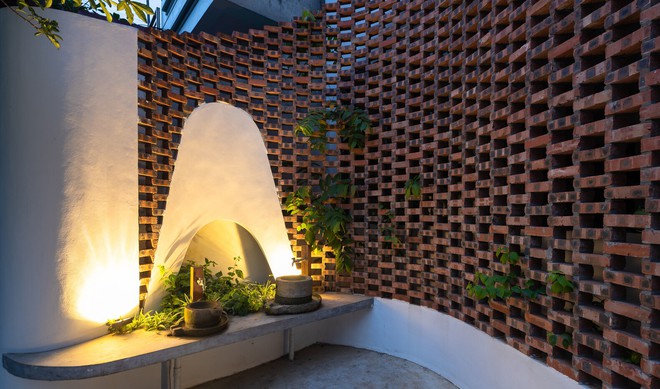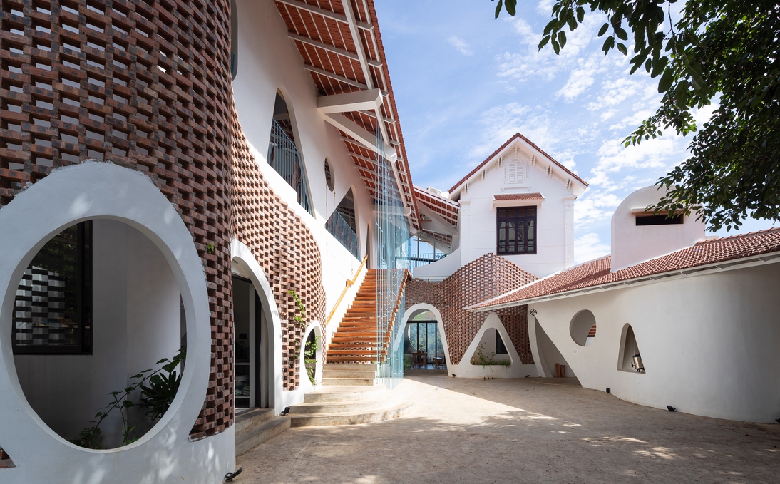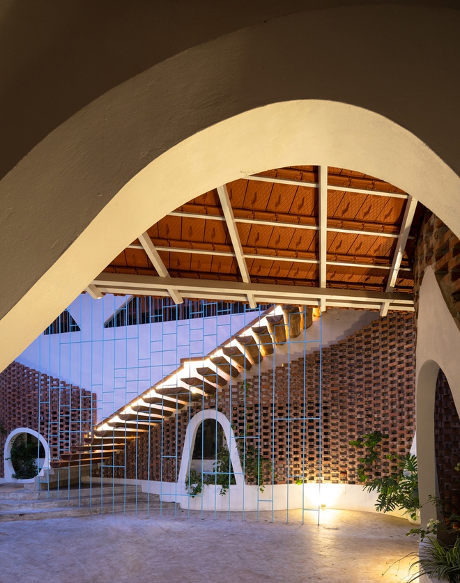 Ngôi nhà là sự tiếp nối của những cánh đồng lúa để có không gian xanh. Màu đỏ của gạch mới và cũ hòa quyện tạo nên một cái gì đó đặc biệt nhưng hài hòa. Nó là sự tiếp nối của cái mới và cái cũ, của sự thay đổi và phát triển.