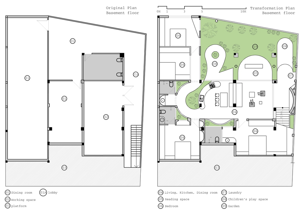 Mục đích của việc thiết kế là cải tạo lại ngôi nhà để tạo không gian riêng biệt, đảm bảo việc kinh doanh cũng như môi trường sống cho các thành viên trong gia đình đông thế hệ, đông con.