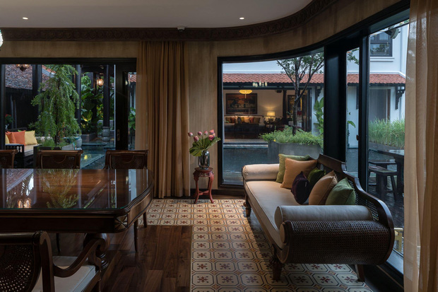Để xóa bỏ những góc nhọn gây khó chịu cho thị giác và tạo cảm giác không gian mềm mại hơn, nên các khung cửa sổ lớn được làm bằng mặt kính cong. Phong cách Indochine còn được thể hiện rõ ở những chất liệu truyền thống như gỗ, tre nứa hay những mảng sàn được lát bằng gạch bông cổ điển.
